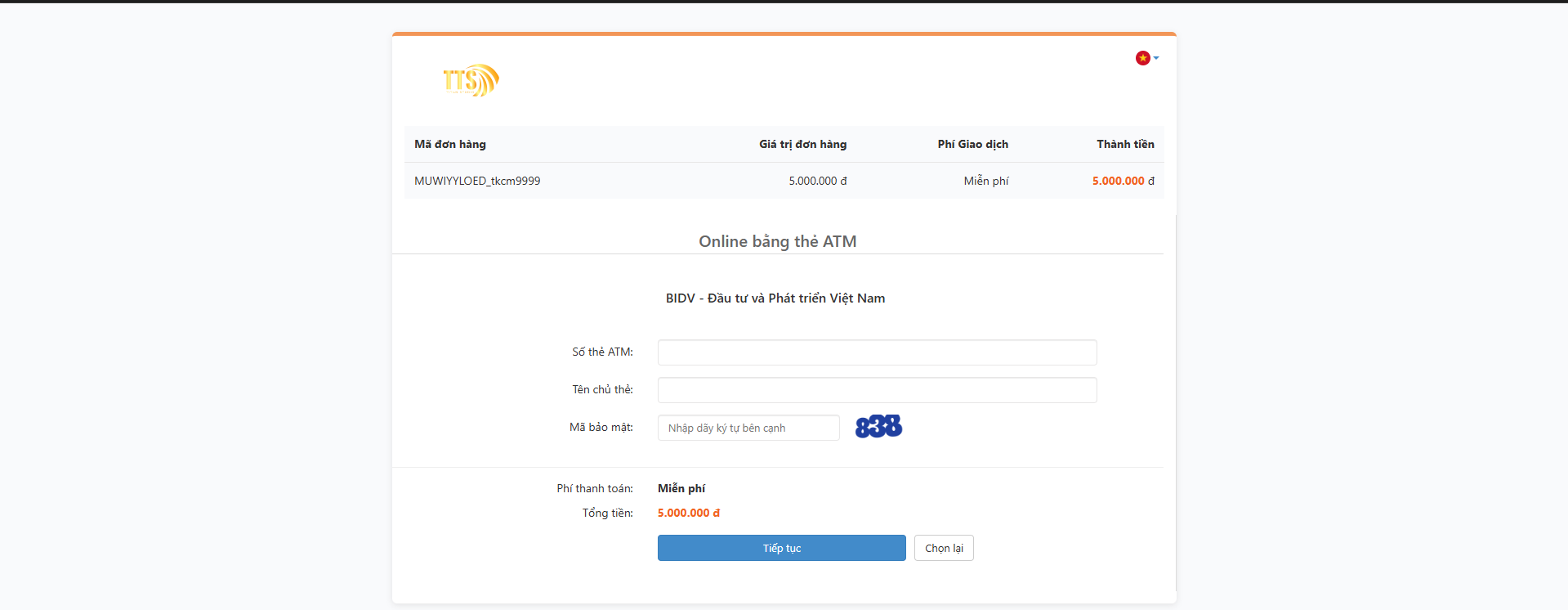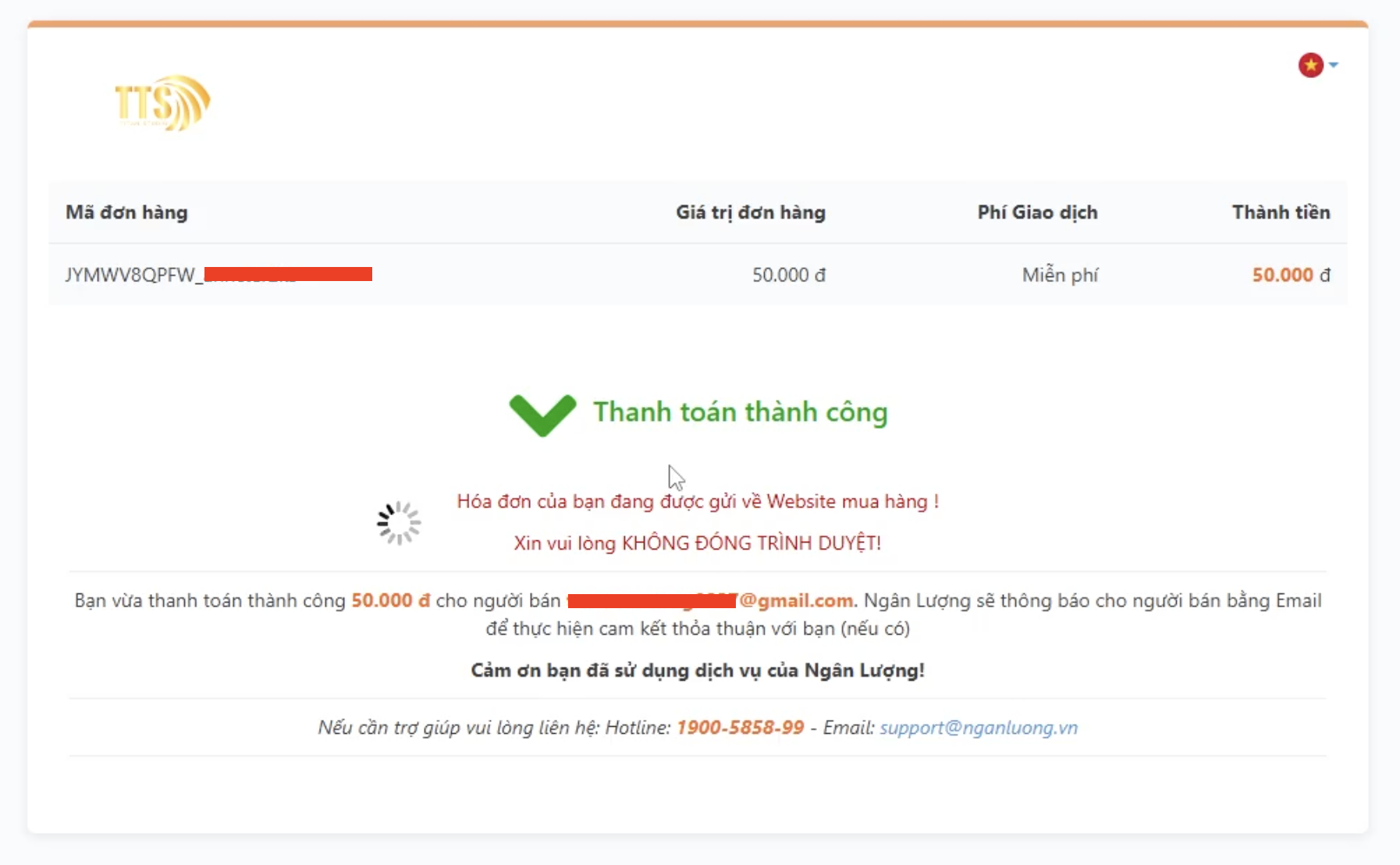 Sau khi thanh toán thành công, không đóng hoặc tắt trình duyệt, hãy chờ để hệ thống tự động chuyển về trang nạp thẻ.
